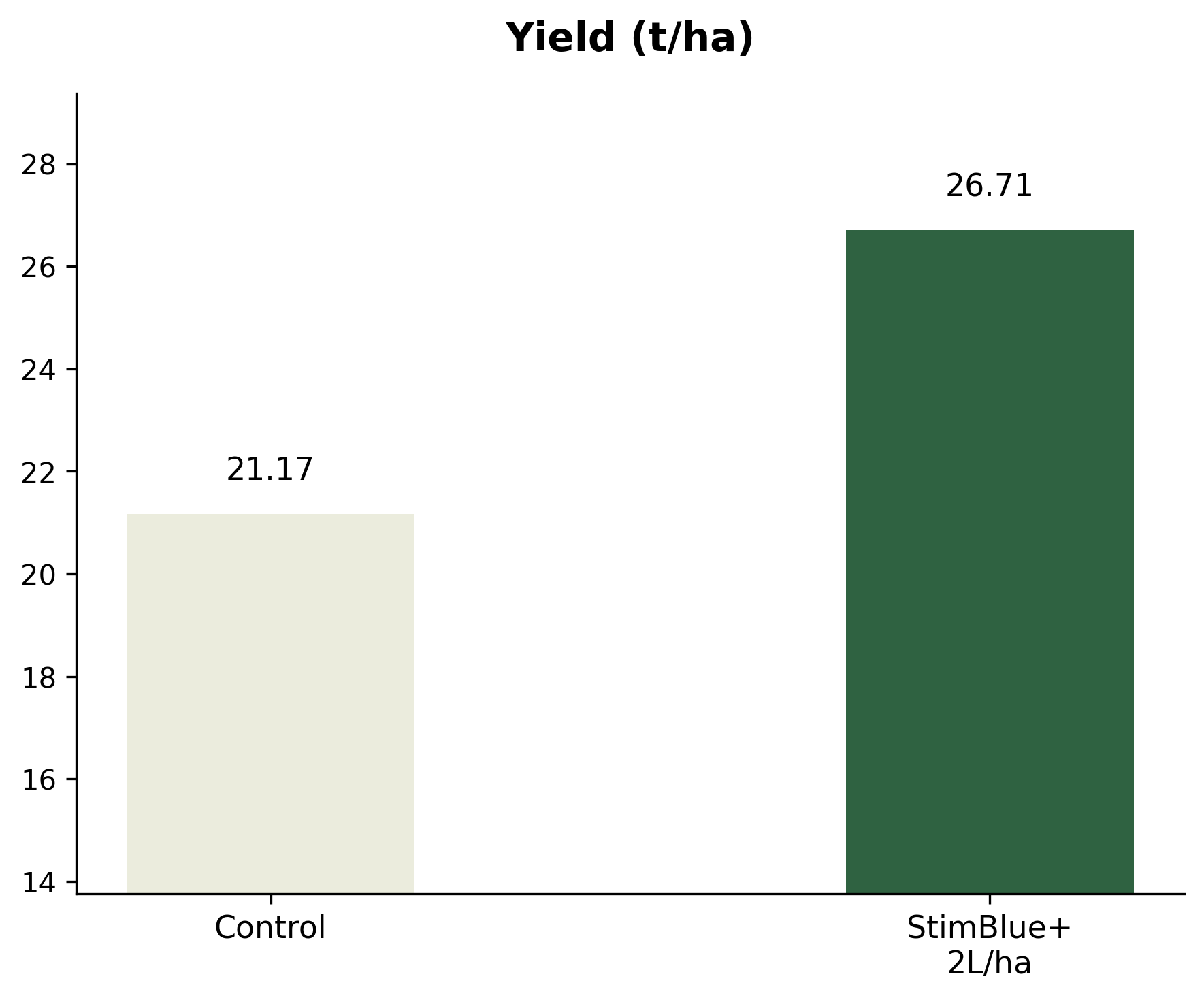 StimBlue+ at 2 L/ha increased yields by +26% compared to the control, generating increased economic returns of between +$5,440 and $7,135 for the grower based on a typical farm-gate price in the country of $1,290 per tonne (2025). The trial was conducted by SynTech Research on lettuce in Palmeiras de Goiás, Brazil.